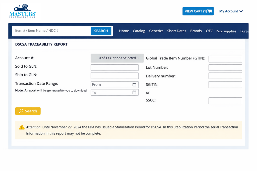 Masters is making DSCSA transaction data available through our customer-facing portal.